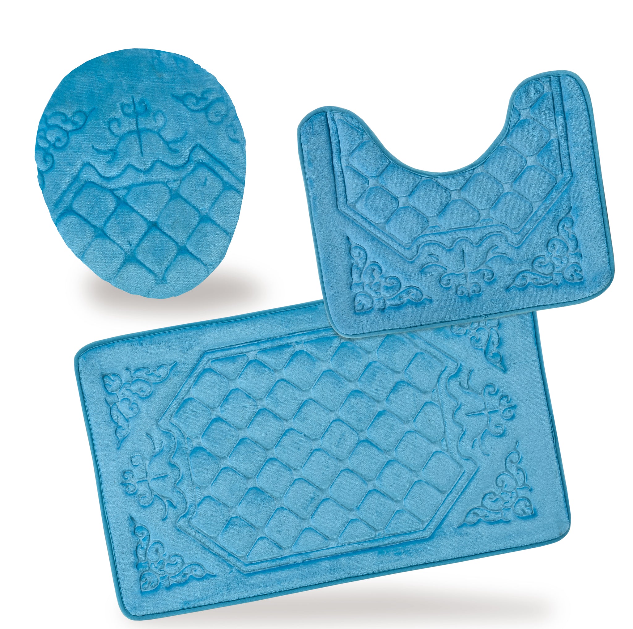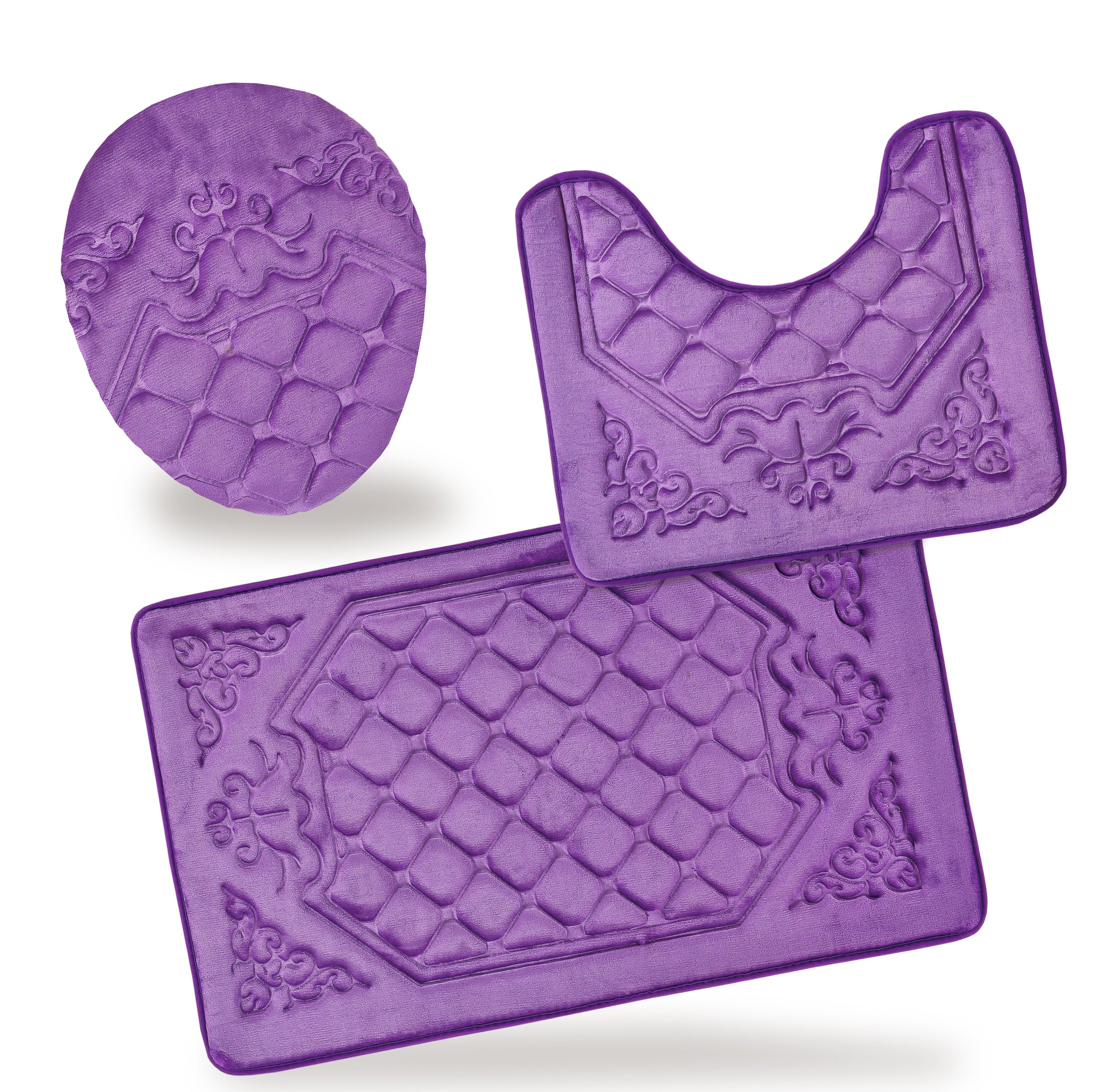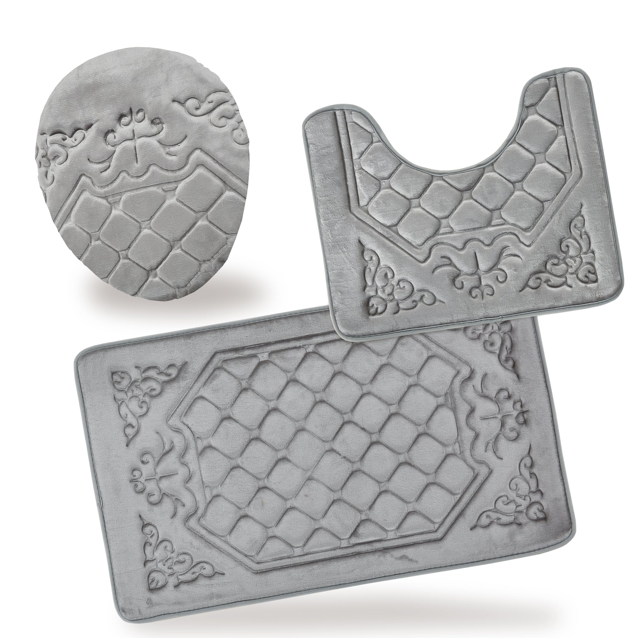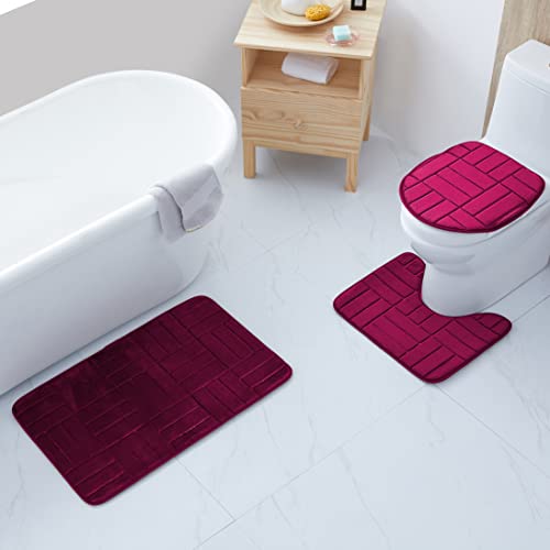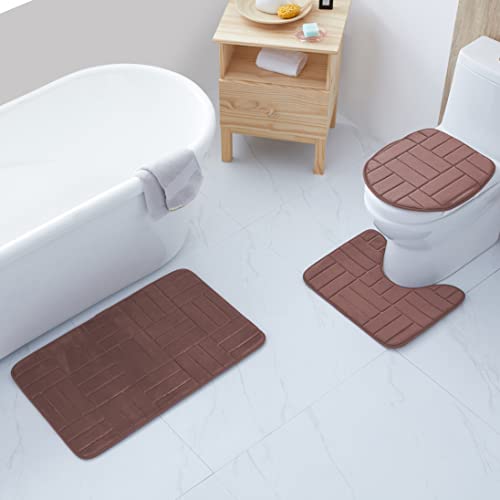 - 3 Piece Memory Foam Bathroom Rug Set For your Comfort.