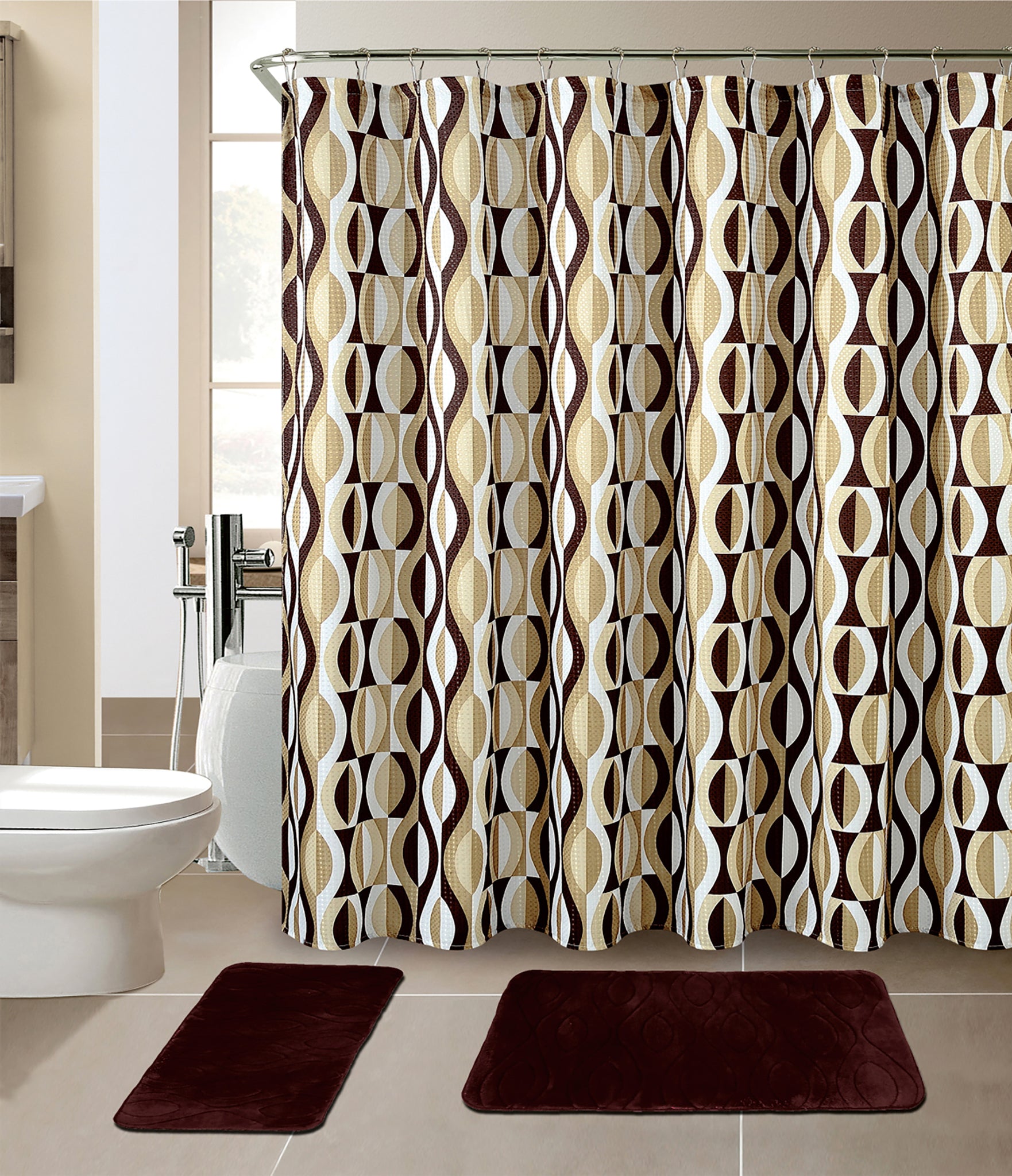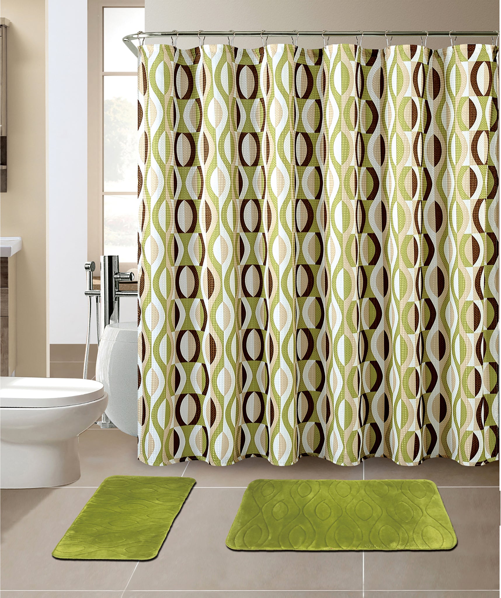15-Piece Helix Design Bathroom Set With Matching Shower Curtain