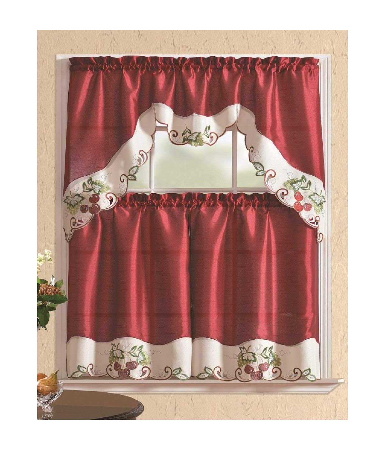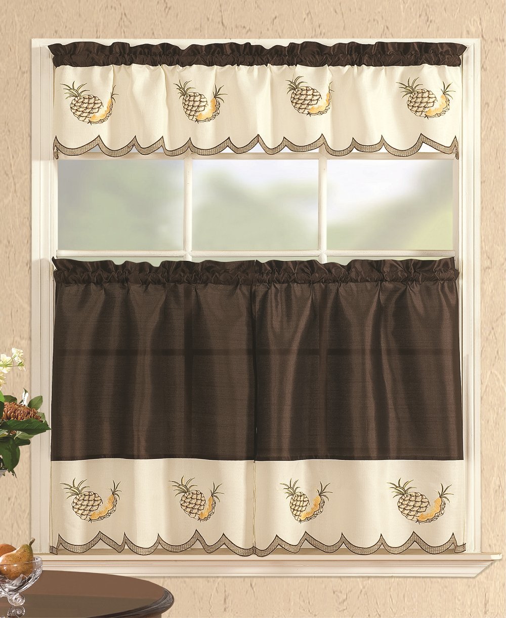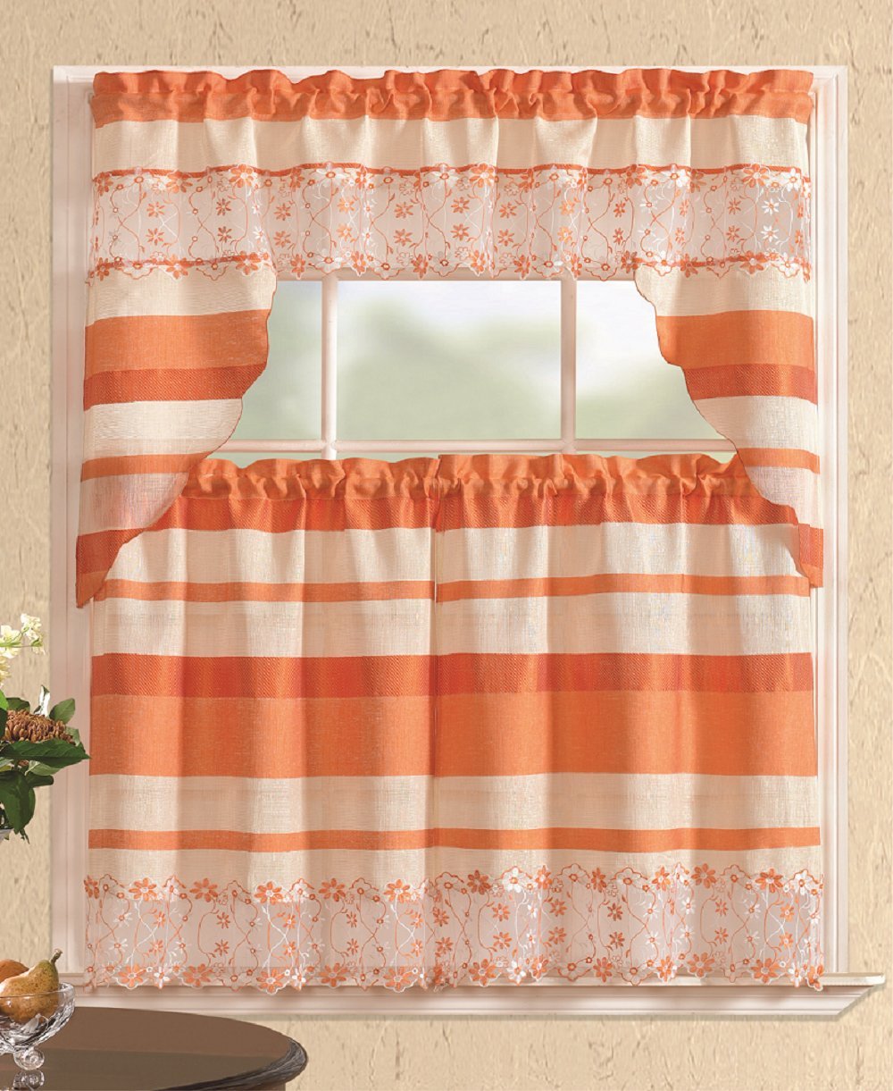 All American Collection Modern Embroidered 3pc Kitchen Curtain Set with Swag Valance